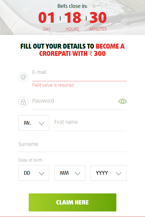 At Lottoland India, the most important things come first: playing the lottery. Only when you have finished your ticket you have to provide a few details in order to register.
